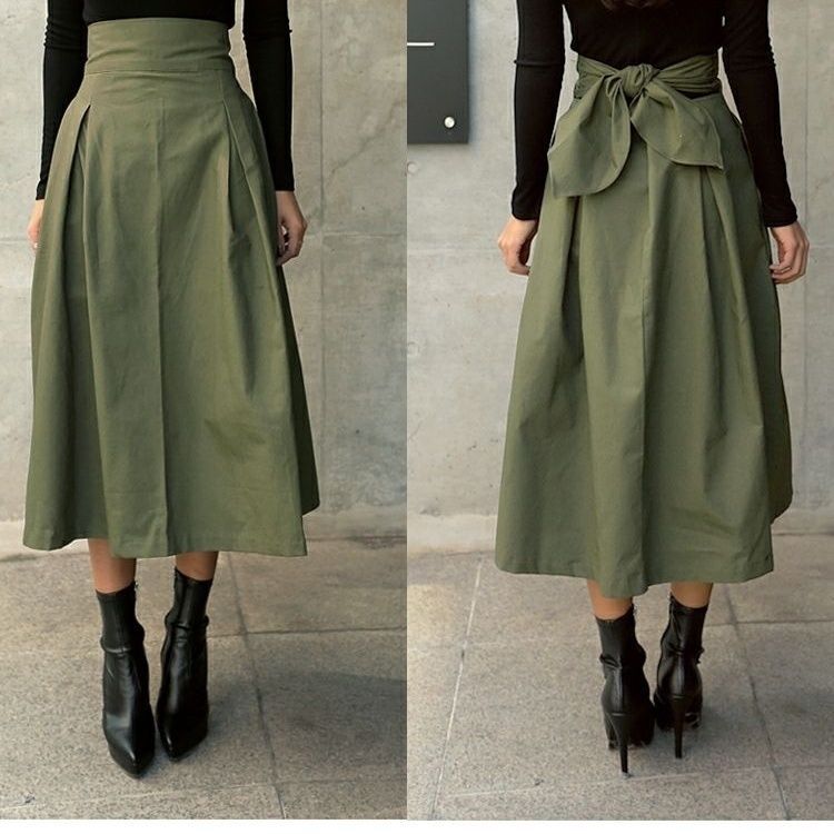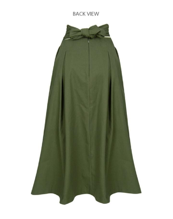 High Waist Midi A-Line Pleated Skirt with Bow Tie Belt, Fitted and Flared Design for Women