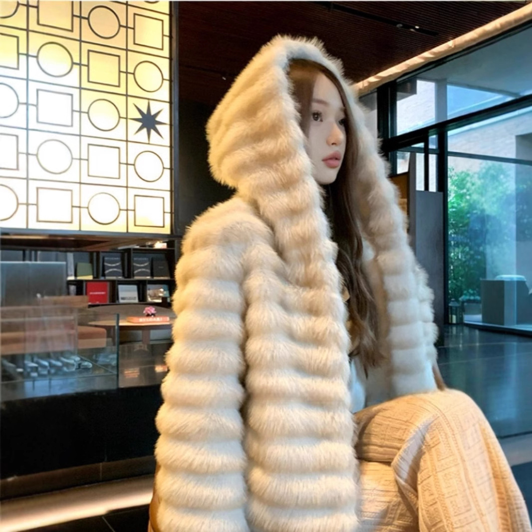 Mink fur mink short hooded jacket for women