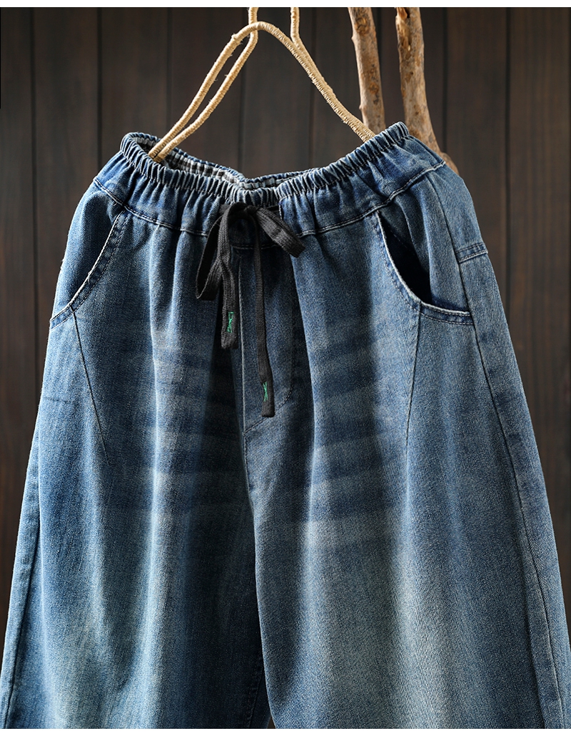 Thin Blue Denim Harem Pants for Women, Loose and Slimming Casual Nine-Point Pants