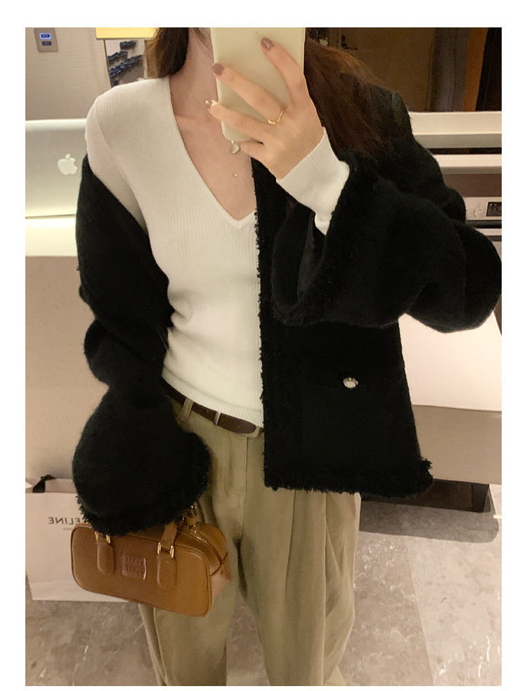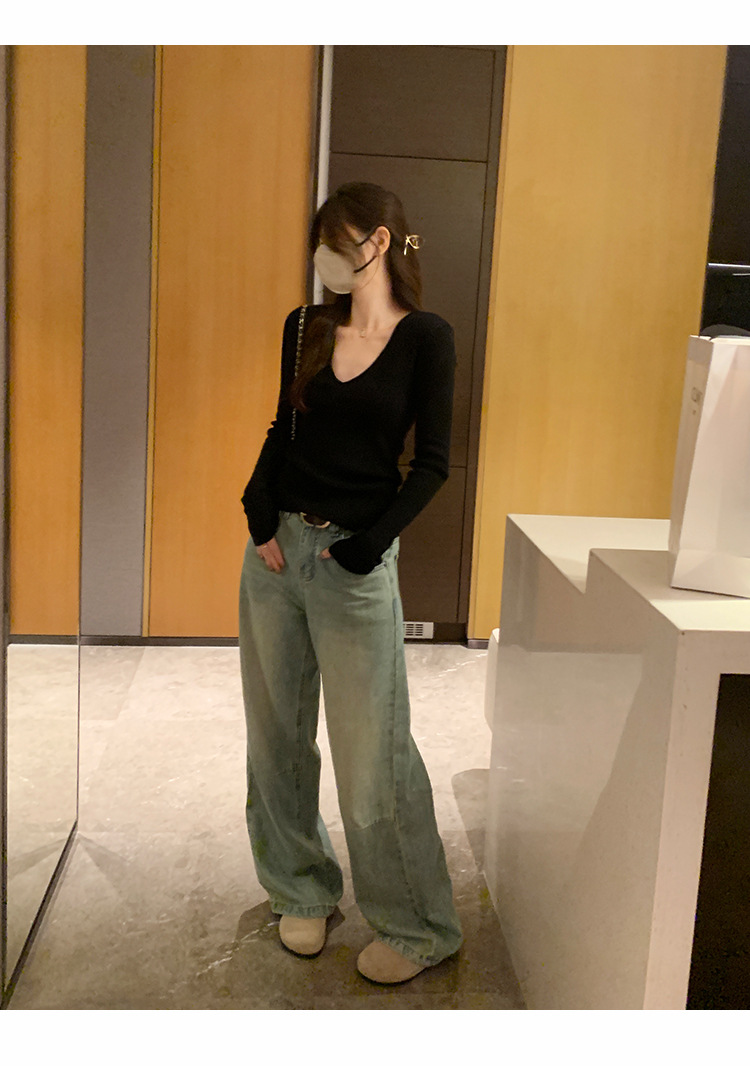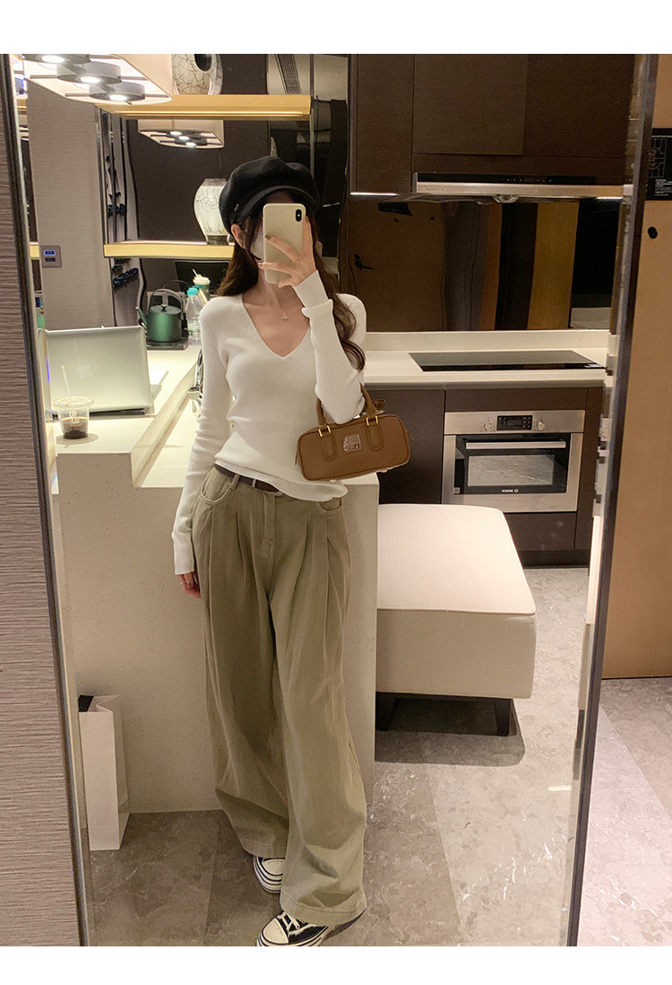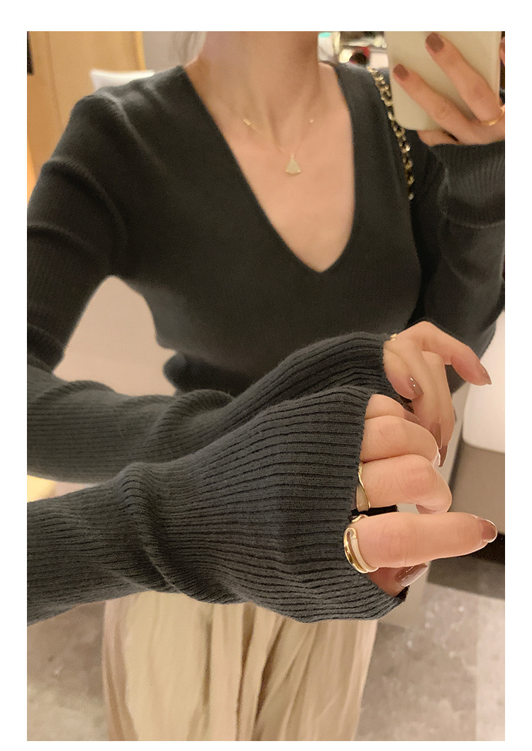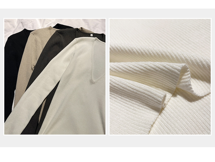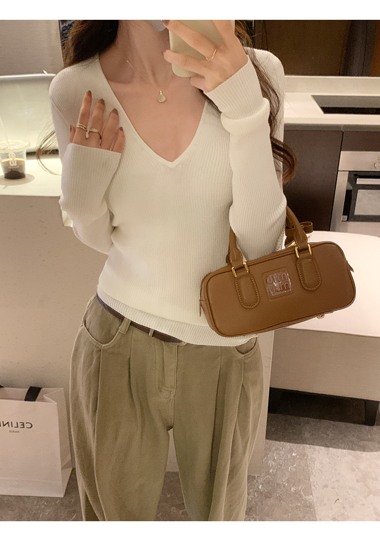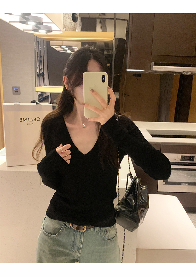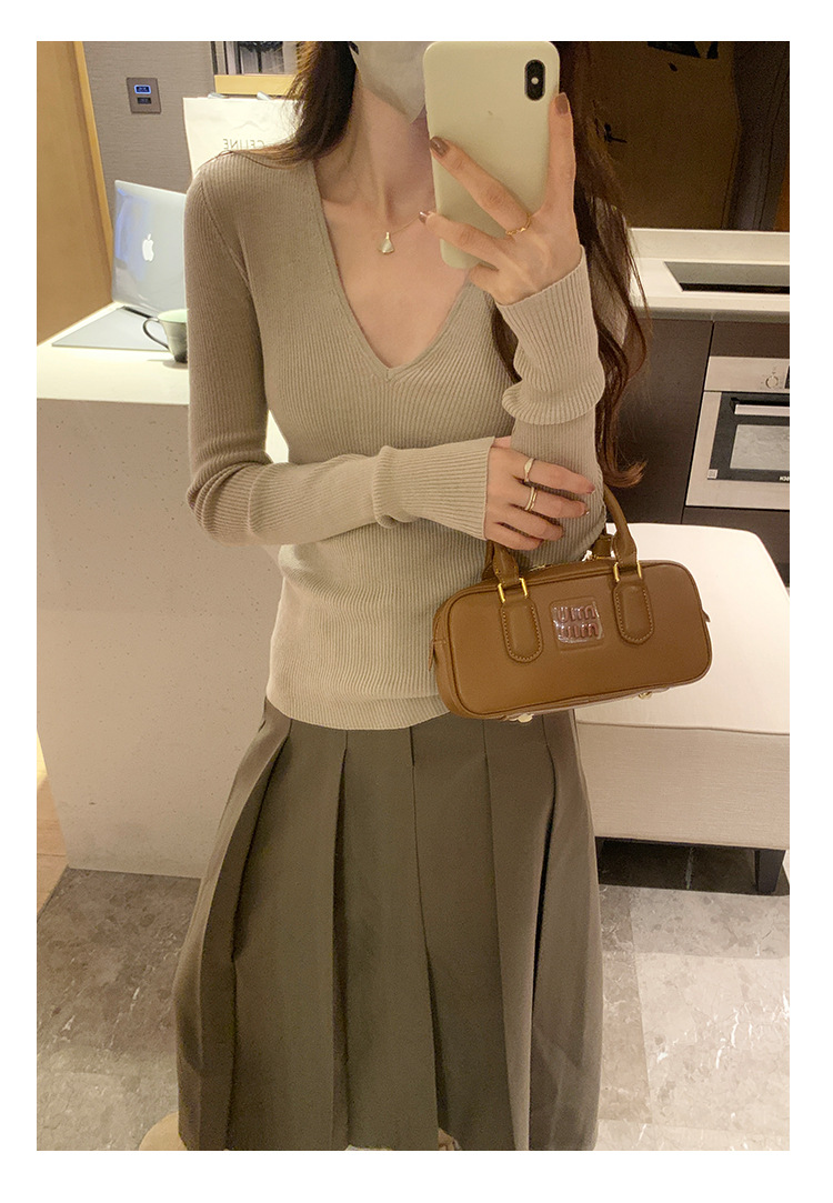 V-Neck Lazy Style Knitted Sweater for Women,Soft Long Sleeve Top, Inner Layer Basic Shirt