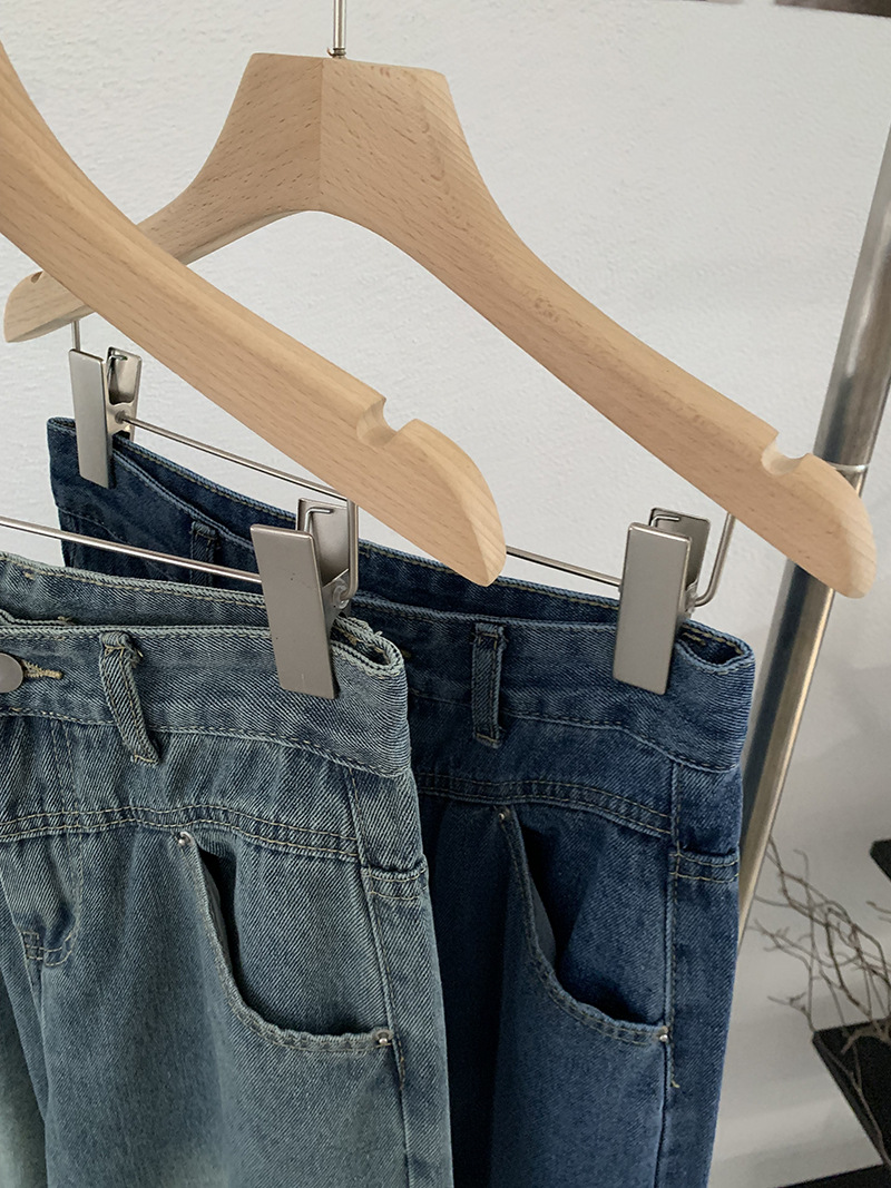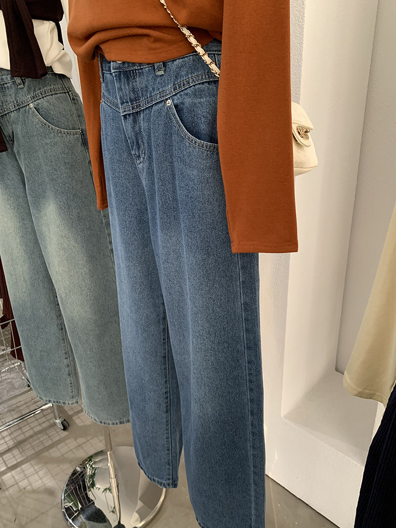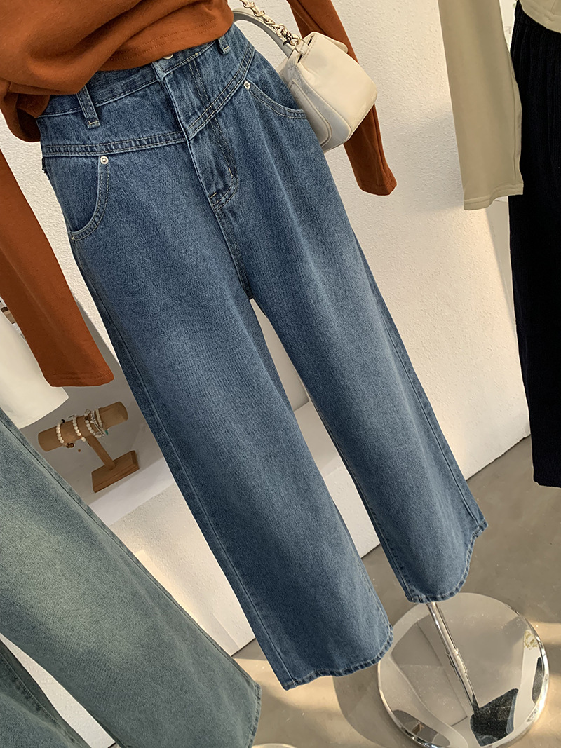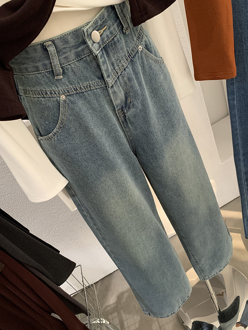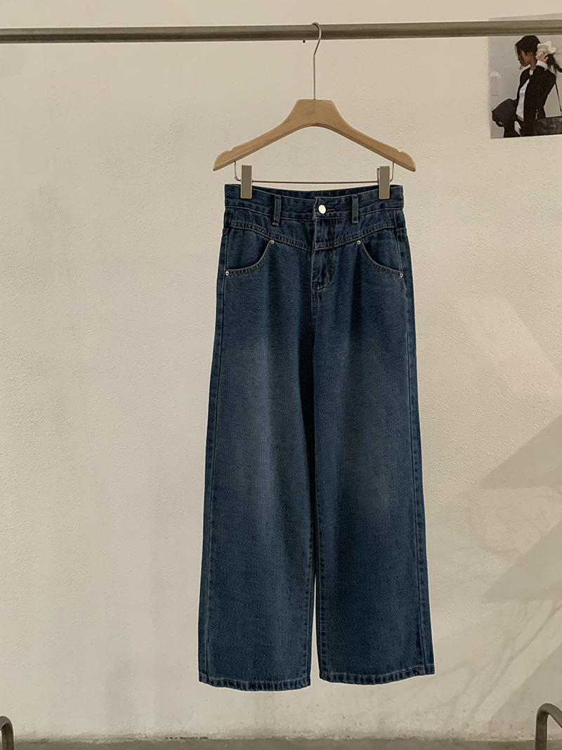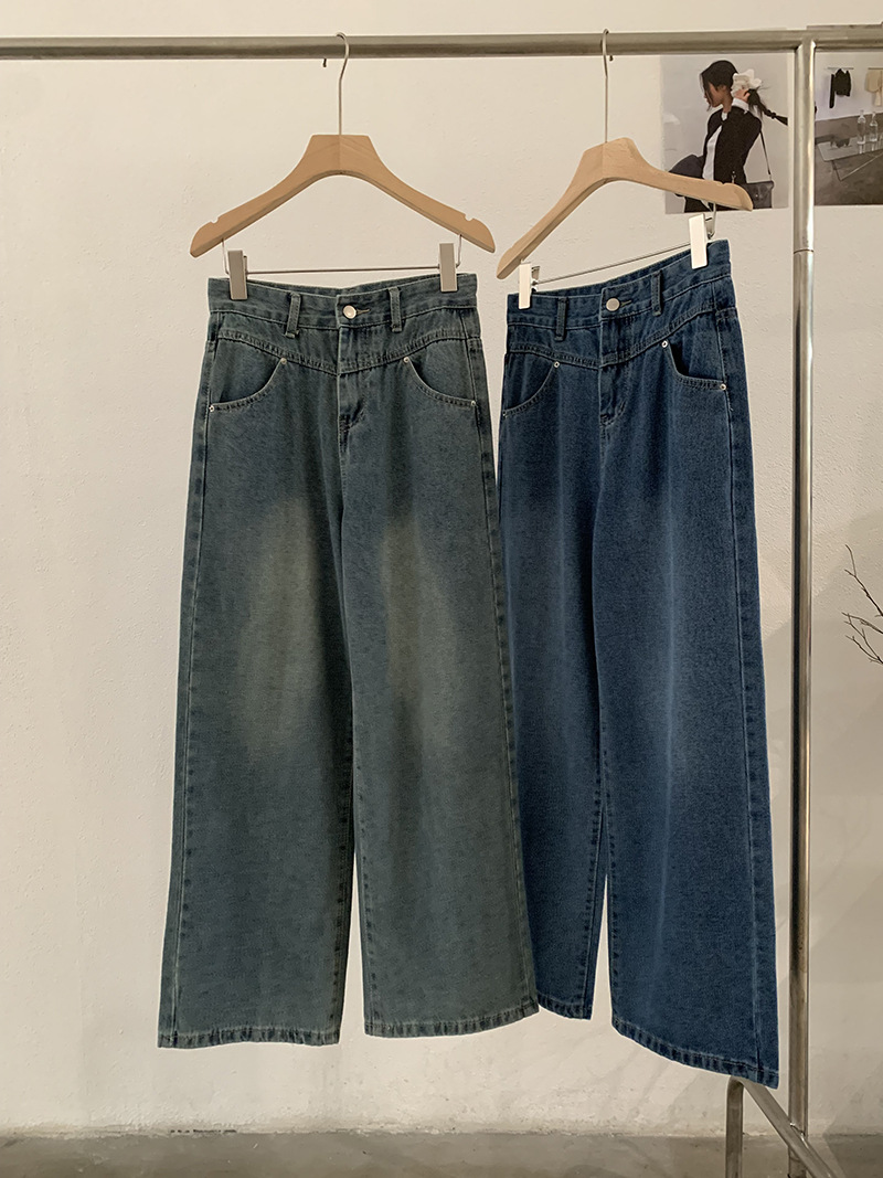 Vintage High-Waisted Denim Pants Women Loose Wide-Leg Slim Straight Leg Pants