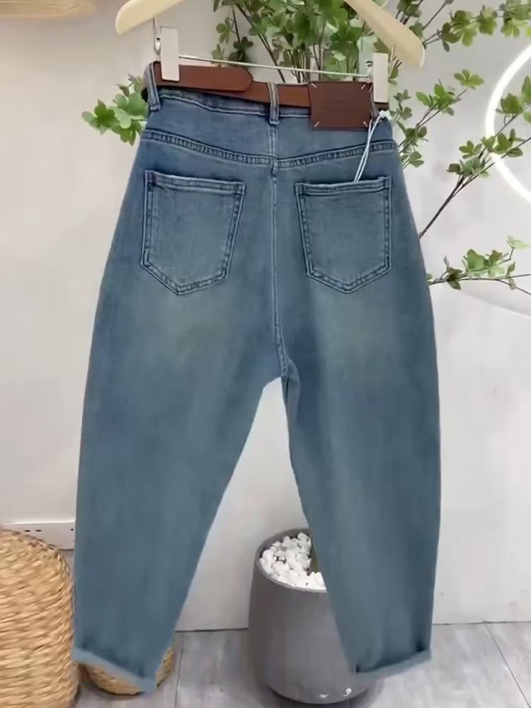 Women Summer Thin Large Size Pear Shape Slimming High Waist Elastic Nine-Point Trousers